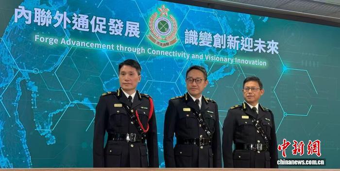 2月12日,香港海关关长陈子达(左二)表示,香港海关将与中国内地及海外电商平台加强合作,防范违禁品经网购渠道流入香港。 中新网记者 戴小橦 摄