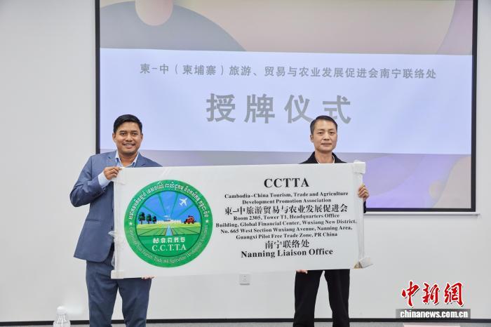 图为柬—中(柬埔寨)旅游、贸易与农业发展促进会南宁联络处在南宁揭牌。 韦锦涛摄