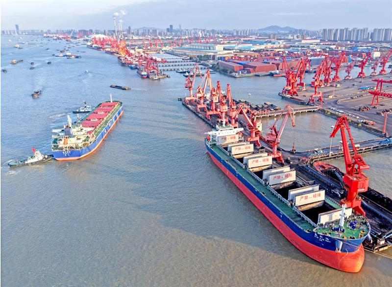 2025年12月21日,无锡(江阴)港一片繁忙景象。(还月亮 摄)